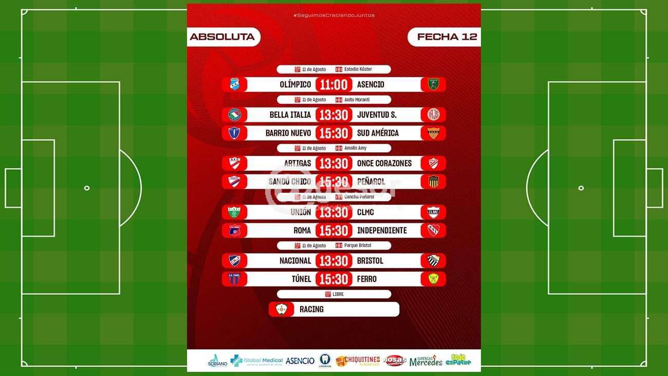 En el Amy a las 13,30 horas juegan Artigas y 11 Corazones, y a las 15,30 lo hacen Sandú y Peñarol. En la bombonera Mirasol juegan a las 13,30 horas Unión y CLMC, y a las 15,30 Roma e Independiente.