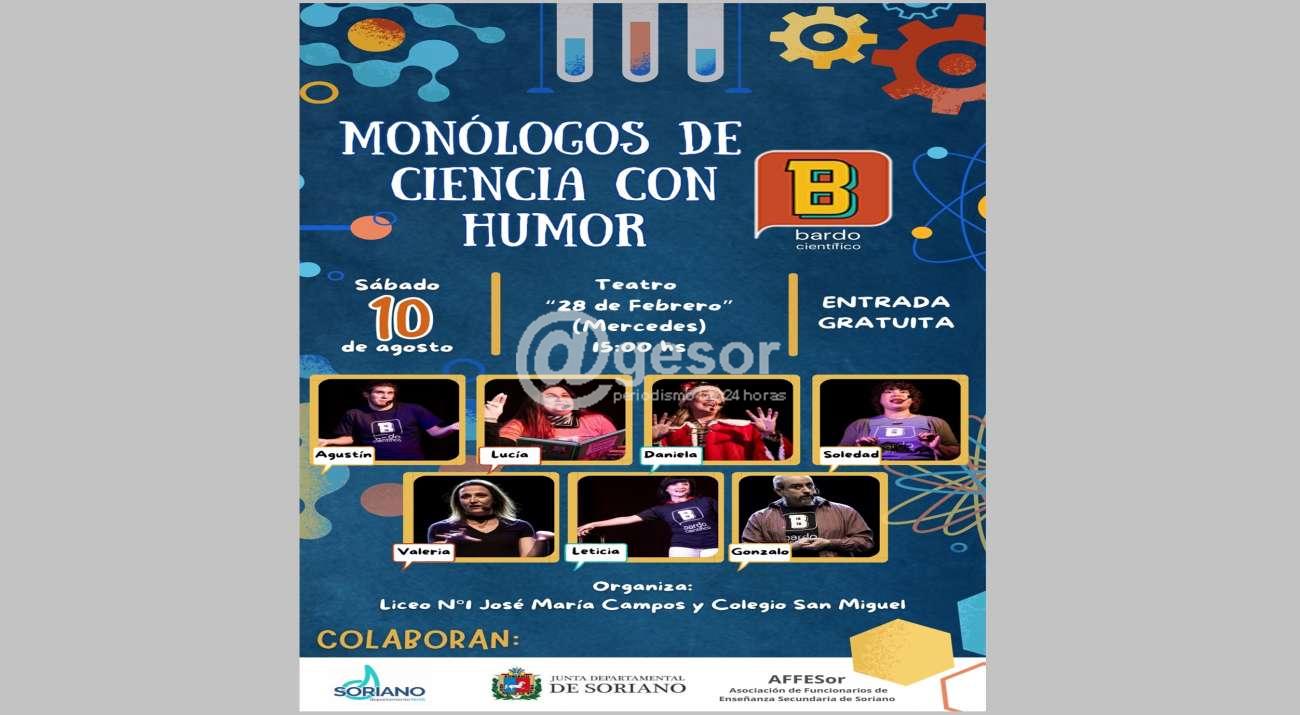 Este´sábado 10 de  Agosto,  a las 15 horas, en Teatro 28 de Febrero de Mercedes, con entrada libre y gratuita se presenta Bardo Científico,  Monólogos de Ciencia con Humor. Un espectáculo abierto a todo público y especialmente recomendado para estudiantes.