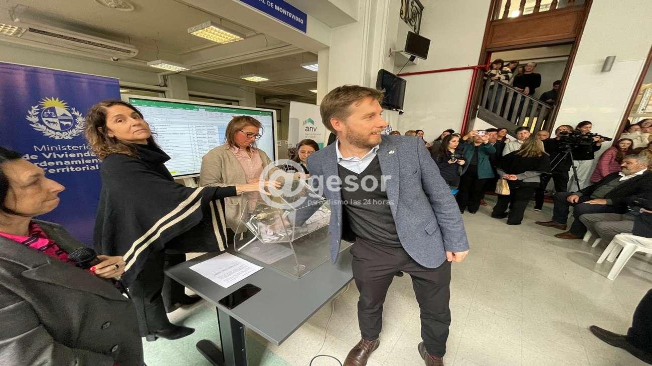 El sorteo se realizó en la sede de la Dirección Nacional de Vivienda (Dinavi) con la presencia del ministro Lozano y el  subsecretario de Vivienda, Tabaré Hackenbruch, respectivamente, y el presidente de la Agencia Nacional de Vivienda (ANV) Klaus Mill.
