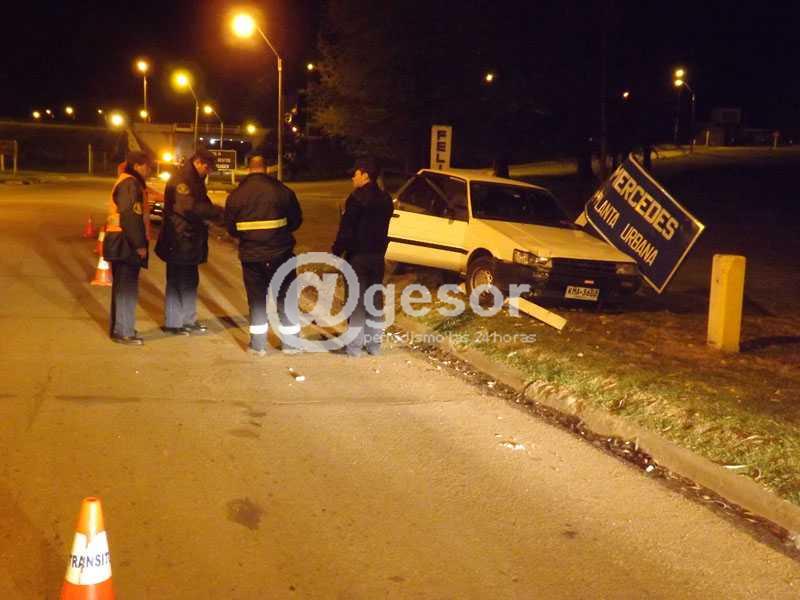Un automóvil se terminó estrellando contra un cartel indicador en la zona de "El Trébol" en los accesos a la ciudad de Mercedes. Se trata del auto marca Toyota Corolla, matrícula KMA- 3603, que era conducido por un hombre que pasadas las 23 horas de este viernes regresaba de su actividad laboral. El cambio de senda se registró en continuación Ferreira Aldunate extremo Este, impactando el vehículo contra el cartel "Mercedes Planta Urbana", justo cuando el conductor se aprestaba a ingresar a la ciudad.