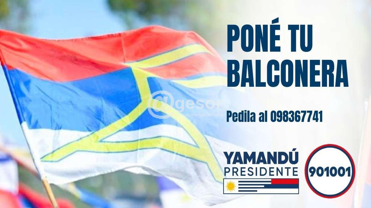 La lista 901001 invita a toda la militancia a embanderar sus hogares con la bandera del Frente Amplio y a colocar la balconera de Yamandú y Carolina.