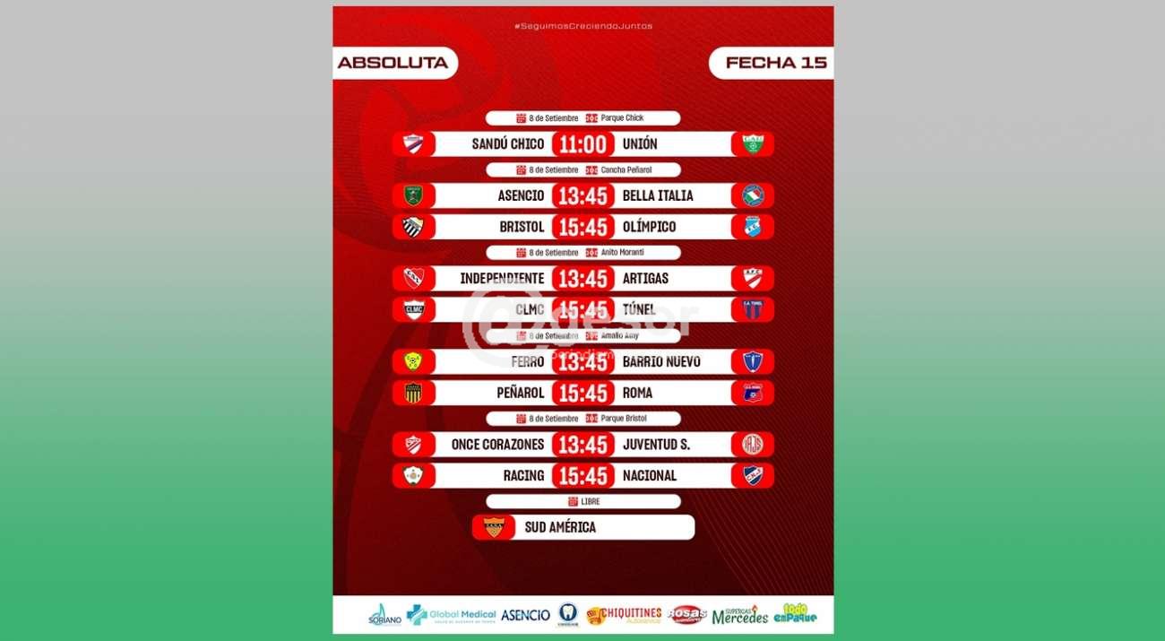 El domingo 8 de setiembre en Parque Chick a la hora 11 y para la TV, juegan Sandù y Roma , ya en la tarde en cancha de Peñarol juegan desde 13 y 45 horas se enfrentaràn Asencio y Bella Italia. A las 15 y 45 tambièn en cancha de Peñarol se enfrentaràn Bristol y Olímpico.