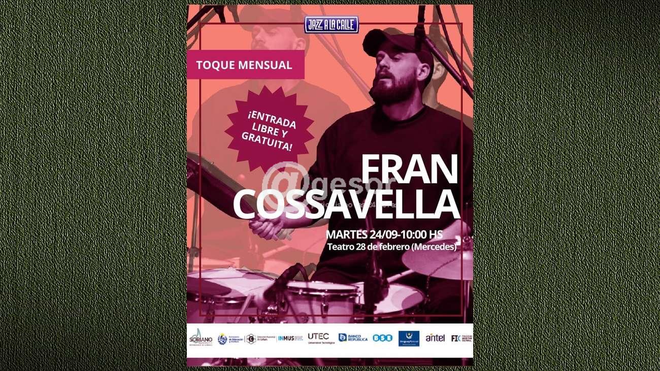 Continúan los toques mensuales de  Jazz a la Calle. Este martes  24 de setiembre, con entrada libre y gratuita, se presentará en el Teatro  28 de  febrero de Mercedes el músico argentino Francisco Cossavella.
