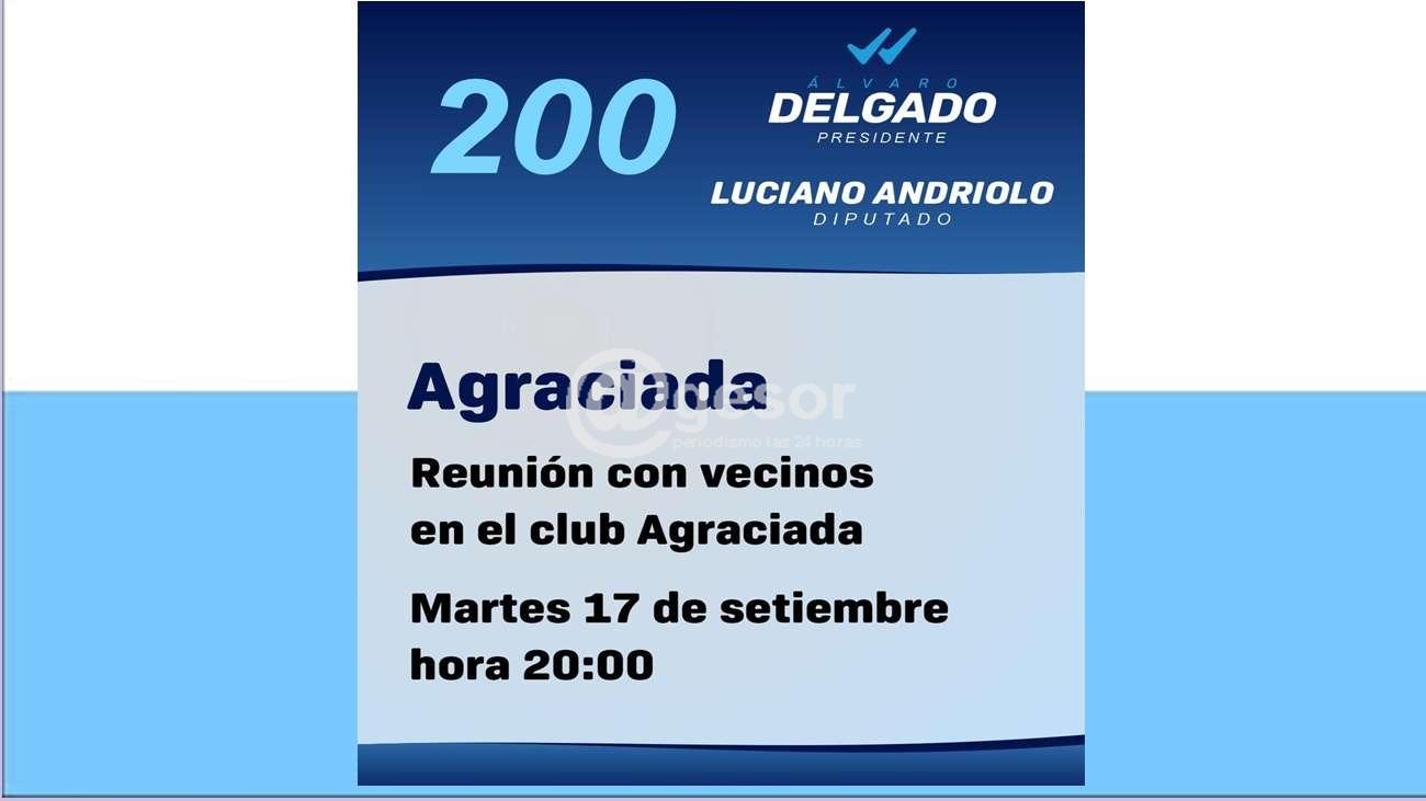 La reunión se realizará en el Club Agraciada,  a partir de las  20 horas.