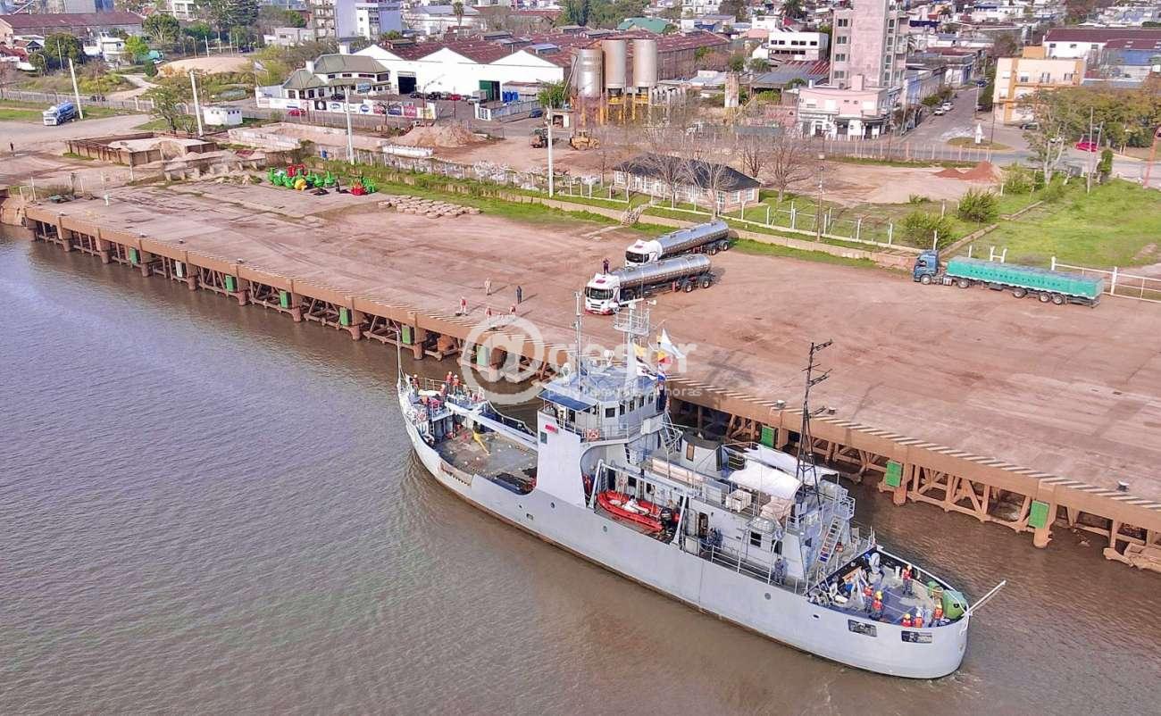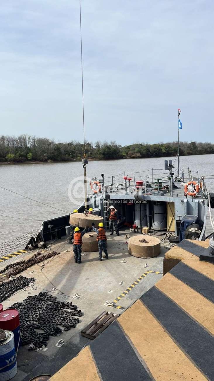 El Puerto de Concepción del Uruguay se sumó a este plan de trabajos brindando los espacios logísticos y de amarre para que el buque pueda tener los Muelles 3 y 4 como base operativa para llevar adelante la tarea.