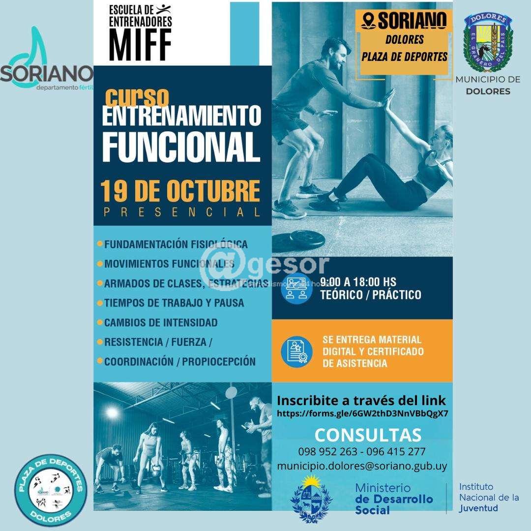 Desde el Municipio de Dolores te invitamos a participar del curso de entrenamiento funcional que se dictará el sábado 19 de octubre en la ciudad de Dolores, Soriano por la ESCUELA DE ENTRENADORES MIFF.