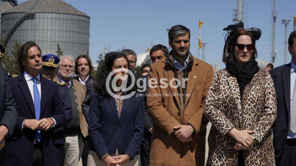 El ministro del Interior, Nicolás Martinelli, acompañó al presidente de la República, Luis Lacalle Pou, a la ministra de Economía y Finanzas, Azucena Arbeleche, al director nacional de Aduanas, Jaime Borgiani, y al presidente de Administración Nacional de Puertos, Juan Curbelo, en la inauguración de la operativa de los nuevos escáneres para el puerto de Montevideo.