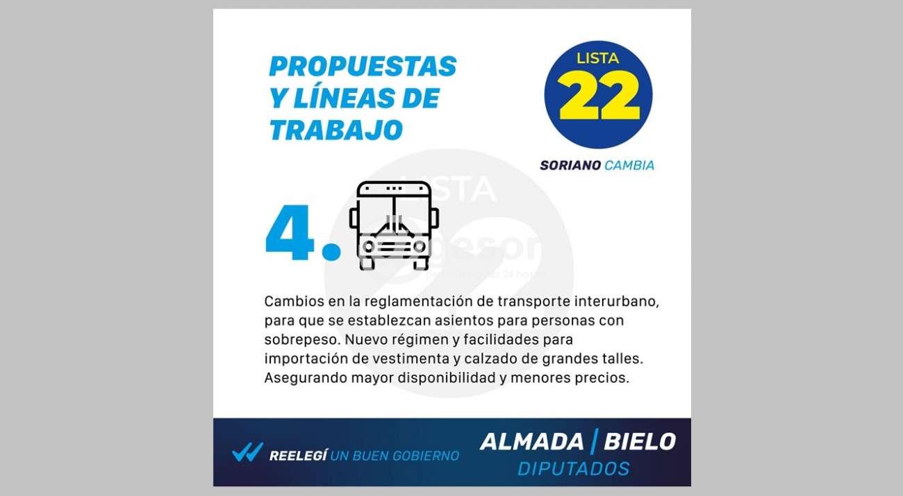 En primer lugar se identifica la problemática de todas aquellas personas con sobrepeso que usan medios de trasporte como los ómnibus, y el habitáculo individual (asiento), no posee las dimensiones y el espacio adecuado para viajar como corresponde en largas distancias.  La propuesta es que las empresas de transporte adecuen asientos para este tipo de personas y en aquellas situaciones que por la configuración de fábrica no sea posible, destinar dos asientos al precio de uno, generando un boleto especial (y subsidiado por el estado) para este último caso.  A su vez, estas personas también poseen problemas para conseguir ropa y calzado a la medida, generándoseles perjuicios en pérdida de tiempo, y mayores costos de acceso a la misma.  Se propone que el MEF (Ministerio de Economía y Finanzas), reduzca o elimine aranceles de importación o incremente deducciones impositivas para aquellas empresas que importen y comercialicen estos talles.  Con estas medidas se pretende que haya una mayor y generalizada oferta de este tipo de indumentaria y calzado especial.  La verdadera inclusión es la que permite a todas las personas poder hacer su vida normal diariamente, independientemente de su condición.