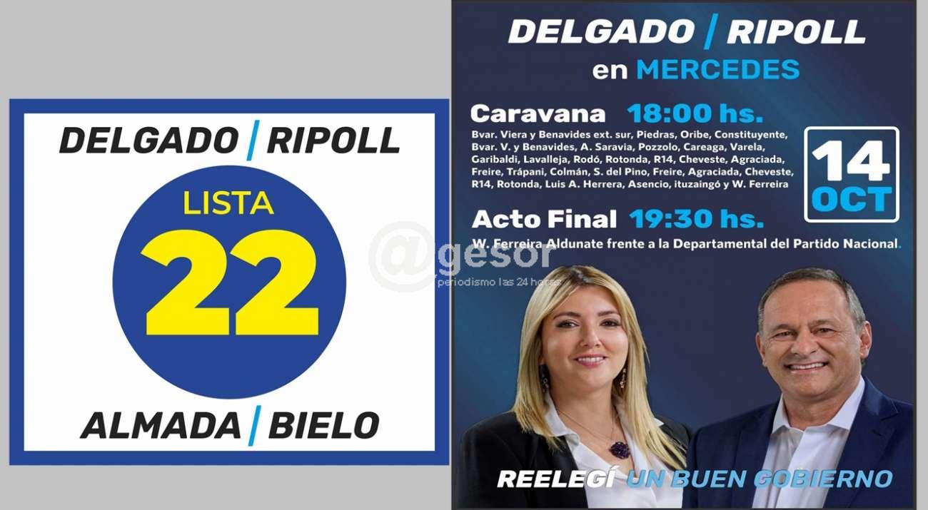 Lista 22 informa e invita a la gran caravana y acto de cierre de campaña de la fórmula del Partido Nacional el lunes 14 en Mercedes