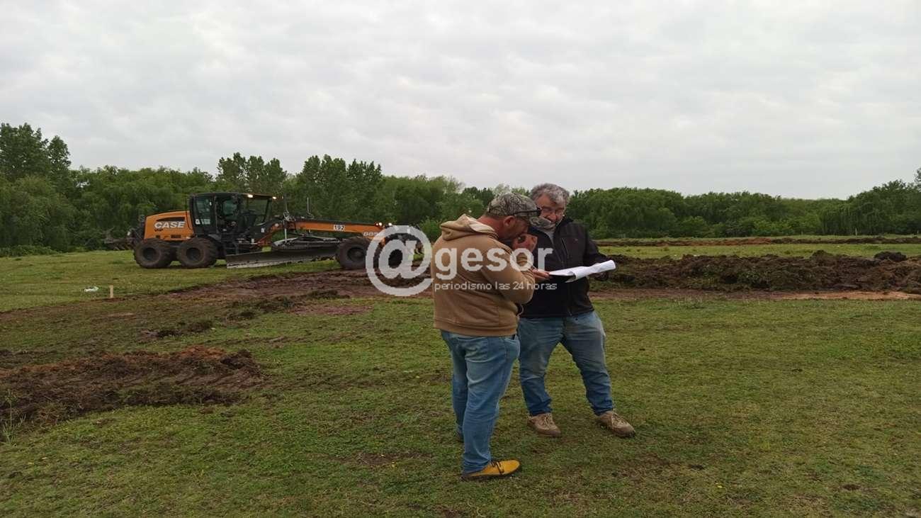 La primera etapa es el retiro de la capa vegetal y la nivelación del terreno, acciones que se realizaron bajo la supervisión del director del Dpto. de Obras, Pedro Nocetti, junto a técnicos de dicha repartición.