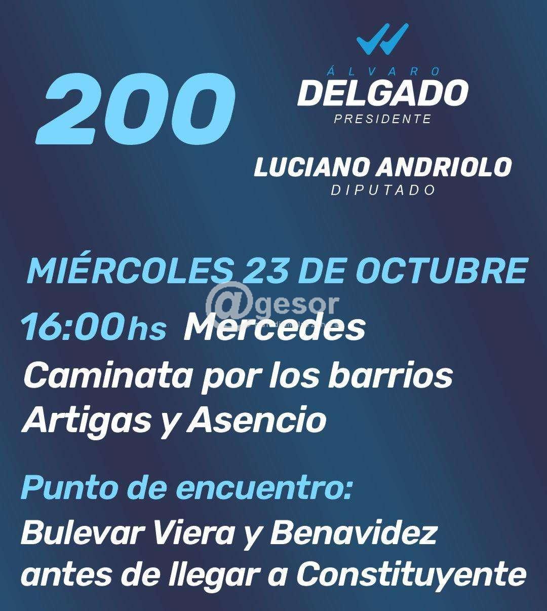Este miércoles 23 de octubre desde las 16.00 horas el candidato a Diputado por la LISTA 200, LUCIANO ANDRIOLO realiza caminata por los barrios Artigas y Asencio.