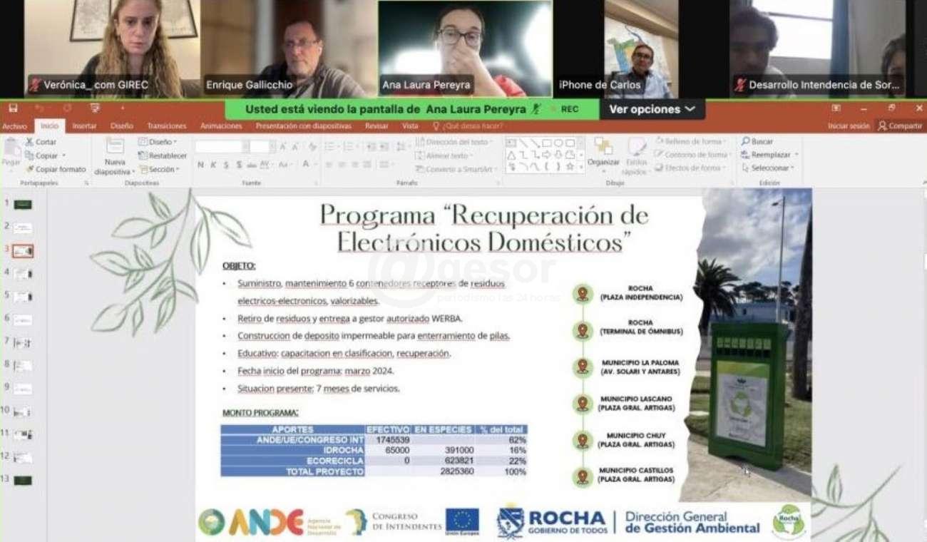 En este taller participaron, Enrique Gallicchio, coordinador del proyecto Gestión Integral de Residuos y Economía Circular (Girec); Diego García, gerente de Desarrollo Territorial de Ande; Clelia de la Fuente, asesora de cooperación de la Delegación de la Unión Europea en Uruguay; junto al equipo técnico del Congreso de Intendentes y Ande, y los referentes departamentales de los proyectos de Rocha, San José y Soriano.