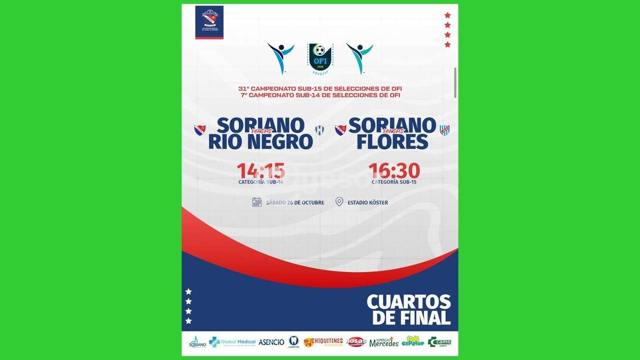 Este sábado en el Estadio Luis Koster desde la hora 14 y 15 se estará disputando un partido de suma trascendencia para la selección de Mercedes en categoría sub 14 que se encuentra disputando la 7 ° copa nacional de Selecciones y que enfrentará a su clásico rival Río Negro capital a los efectos de poder lograr un pasaje a semi finales del torneo de selecciones. Conviene recordar que en el primer partido disputado en Fray Bentos fue triunfo de los dirigidos por Aboal por 1 a 0 con gol de Emilio Sánchez, por lo cual en caso de empate avanza a semifinales Soriano Capital.
