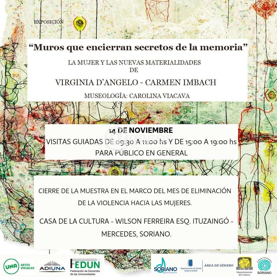 La Intendencia de Soriano prepara el cierre de la exposición "Muros que encierran secretos de la memoria", en el marco del mes de eliminación de la violencia hacia las mujeres.