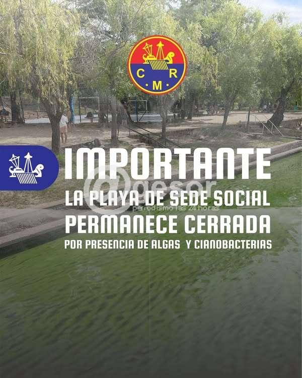 Les informamos a nuestros socios y visitantes que la playa de la sede social permanecerá cerrada debido a la presencia de algas y cianobacterias, situación que puede afectar la salud y seguridad de quienes ingresen al agua.