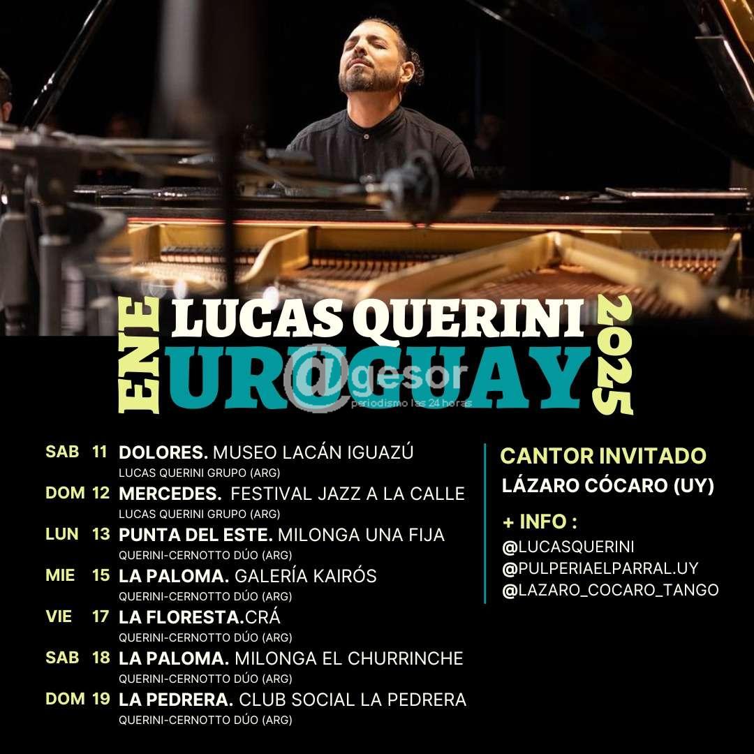 Llega a Uruguay el reconocido pianista argentino Lucas Querini para realizar una serie de conciertos en el Litoral uruguayo y la costa oceánica, en formato Quinteto y Dúo, con el cantor uruguayo Lázaro Cócaro como invitado.