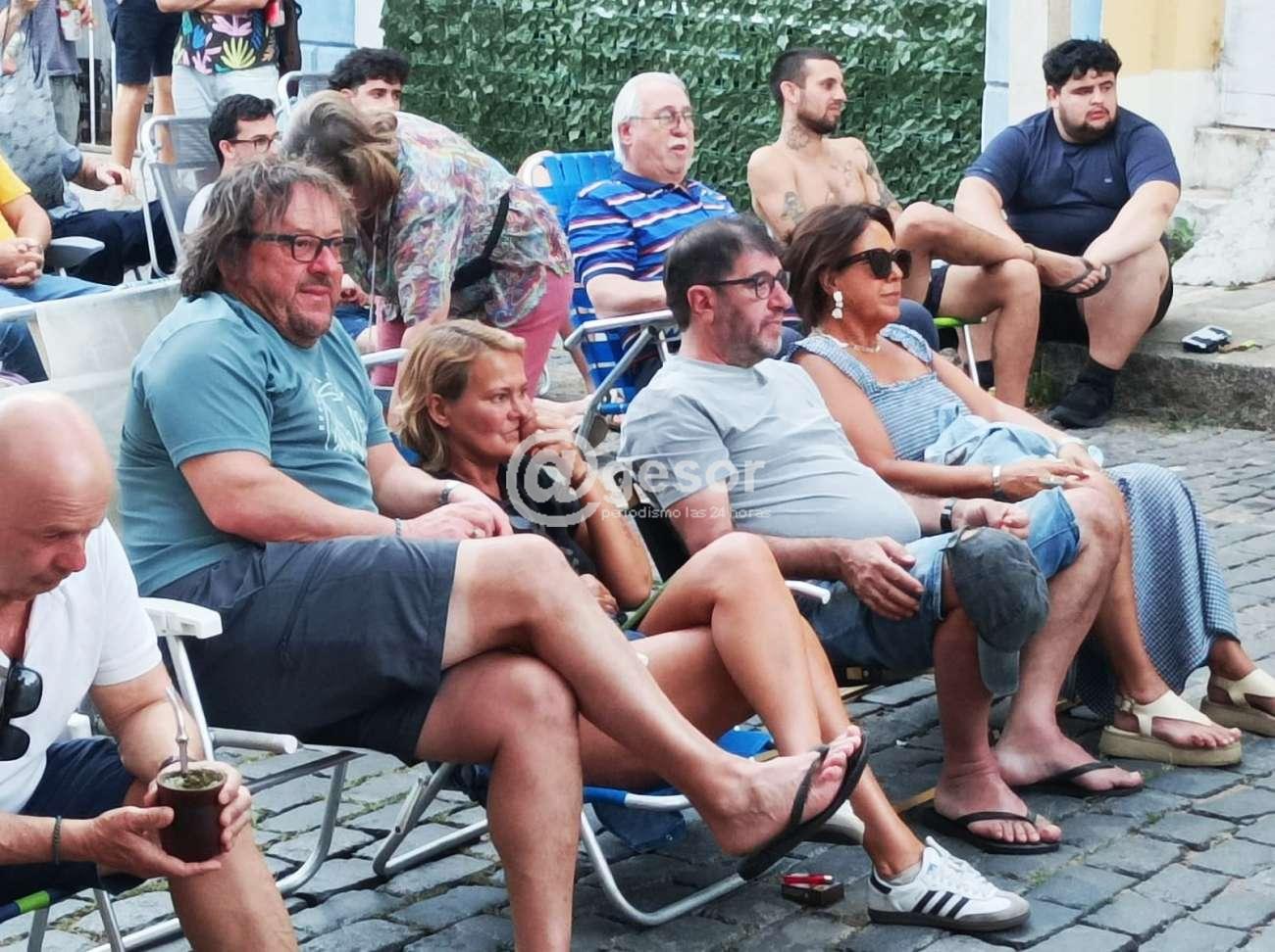 Allí entre el público de los toques callejeros, como en cada una de las 17 ediciones del Encuentro Internacional de Músicos Jazz a la Calle, junto a su señora y familiares, saludado por varias personas amigas y conocidas al verlo, mientras se desarrollaba el toque de calle Cassinoni entre Detomasi y Leandro Gómez, en su silla playera, estaba el Presidente del Frente Amplio, Fernando Pereira.