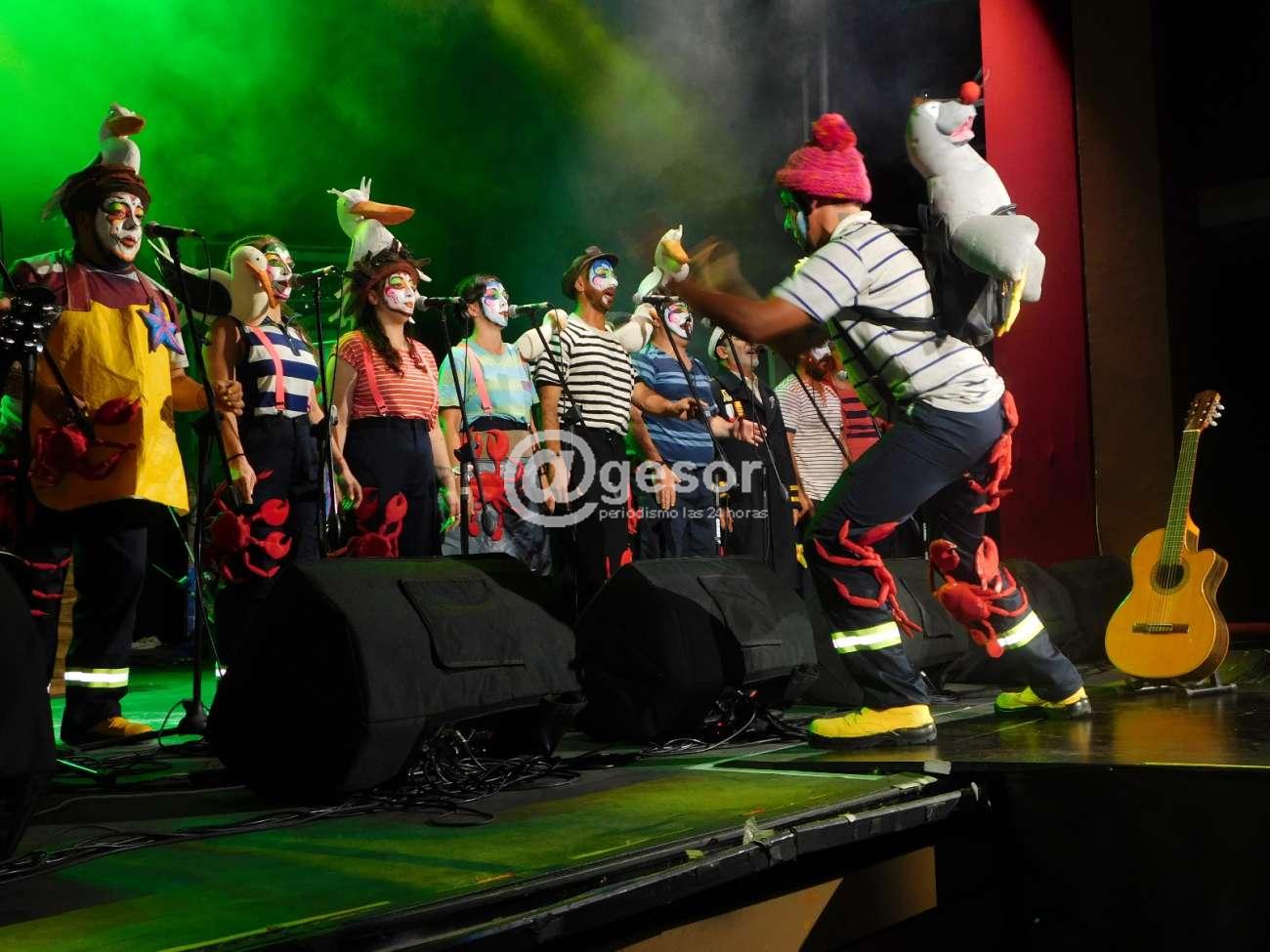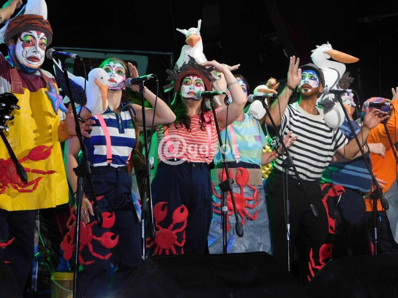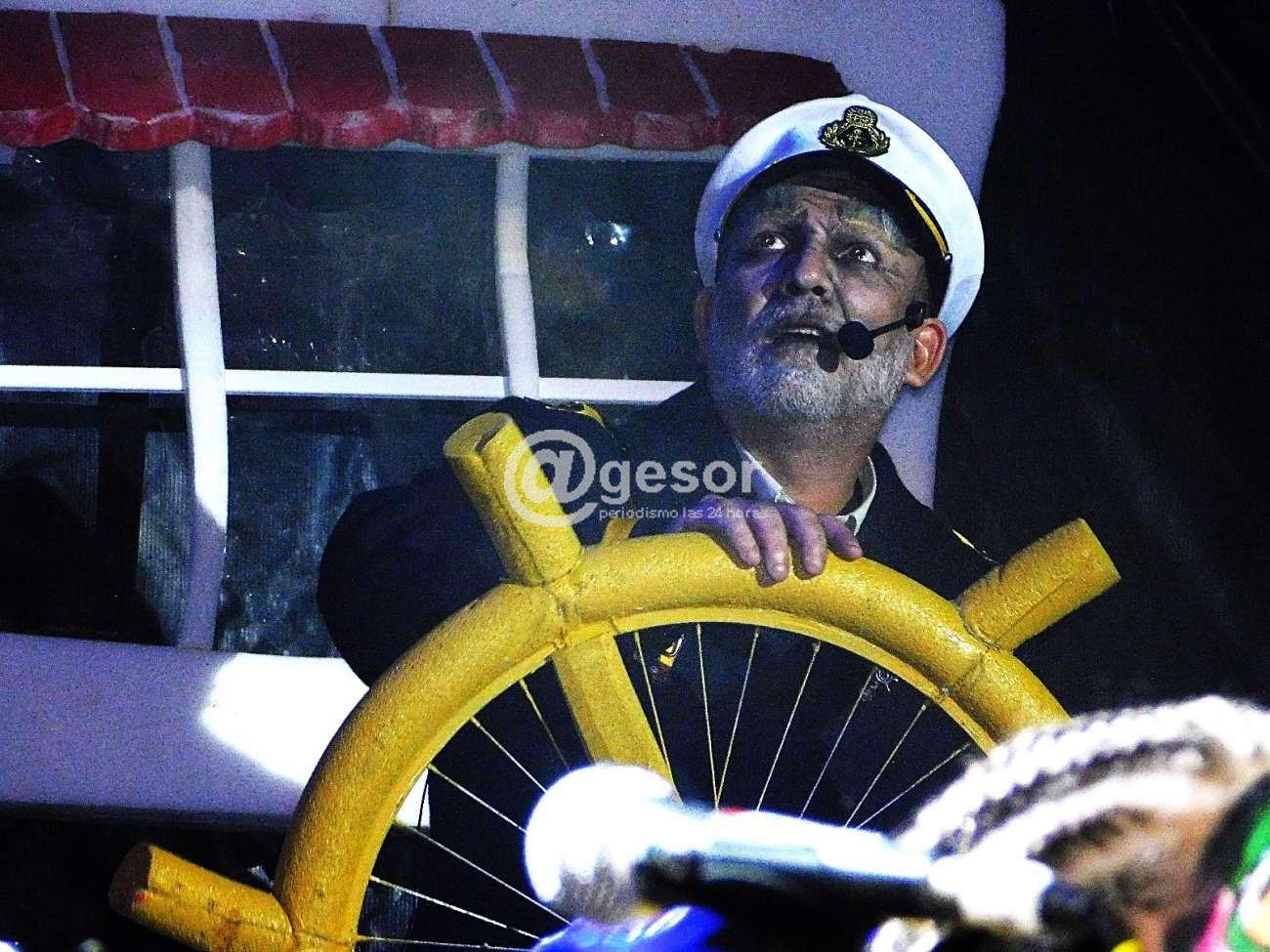 El trabajo desde el inicio de Jorge Romero como capitán del barco pesquero guiando al grupo en cada una de las etapas que va surcando la embarcación está muy bien llevado a cabo, y además se agiganta su labor cuando se le hace ver que su viaje llega al final como capitán entendiéndose que está viejo, y su propio hijo le quita el traje de capitán, le dice que no entiende y que no sabe lo que dice, que ya se terminó todo, y él termina aceptando, y cuando dice "vamos a casa", su hijo le responde "no, a casa no", y termina llevándolo a un geriátrico, donde lo esperaba un trabajador que había estado con él barco. Era el momento en que la murga entraba a hablar y a cantar sobre el Alzheimer y la ancianidad en general, el propio Romero -muralista él- en un par de minutos realiza sobre papel colocado a un costado del escenario, esbozo de un dibujo de la figura de un capitán, de cómo lo vería una persona con Alzehimer cuando puede registrar algo, dando otro toque de calidad a la presentación. A ello se suma la canción que la murga ofrece sobre el tema, con una letra que invita a reflexionar.