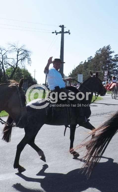 Uno de los momentos más destacados de la jornada llegó con el desfile de caballería, donde García y sus acompañantes se sumaron a la comitiva. Montado a caballo, el candidato recorrió las calles de Dolores, saludando a los vecinos y recibiendo el apoyo de muchos que se acercaban para tomarse una foto o simplemente expresarle su saludo.