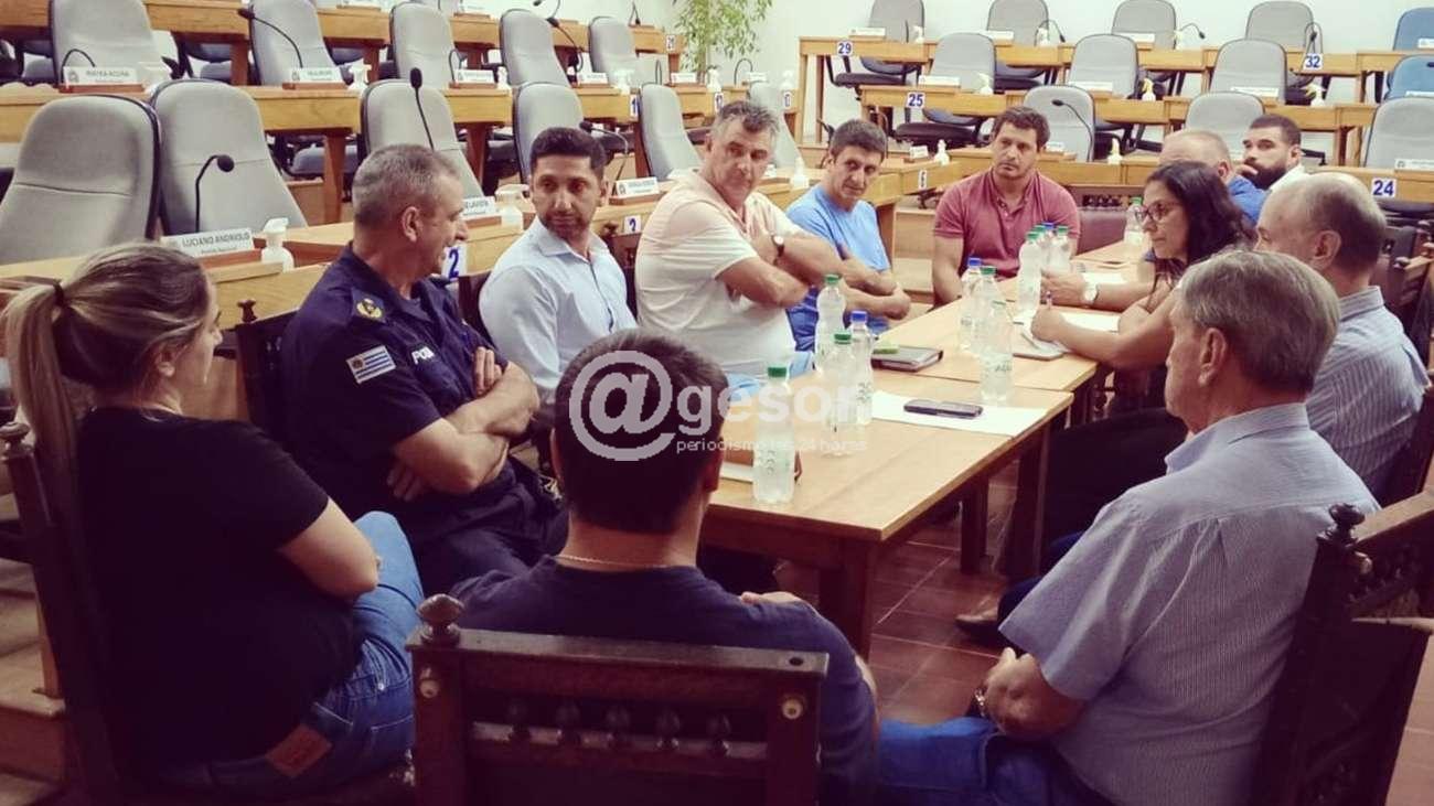 Se realizó el intercambio con, además del proponente, los siguientes invitados: presidente de la Junta edil Gonzalo Novales, presidente de la Liga de Fútbol Dr. Pablo Marrero, presidente de la Asamblea de Clubes Jorge Pedernera, presidente del Colegio de Árbitros César Arrúe, jefe del Estado Mayor de la Policía Crio. May. Julio Báez, directora de Deportes Lic. Noemí Viera y coordinador de Deportes Álvaro Polero.