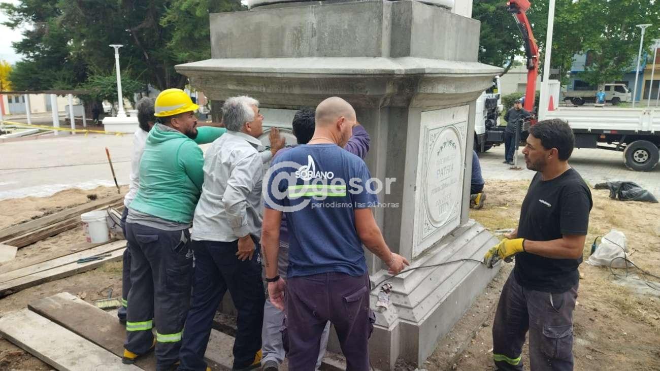 Tras realizar la pintura de la columna, se efectuó la colocación de las placas originales en mármol, situadas en la base. Las mismas fueron reacondicionadas, incluso algunas debieron ser sometidas a un proceso especial de restauración debido a su estado.