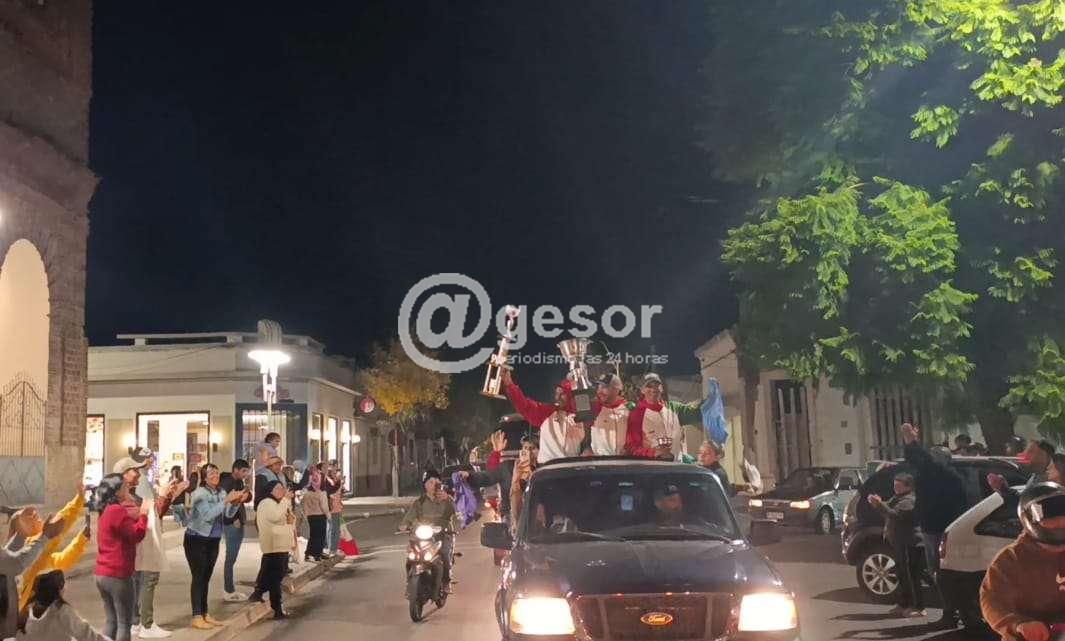 El alcalde Adrián Amuz encabezó una caravana, acompañado por vecinos y vecinas que salieron a las calles para saludar y homenajear a estos jóvenes deportistas que nos representan con tanta pasión y dedicación.