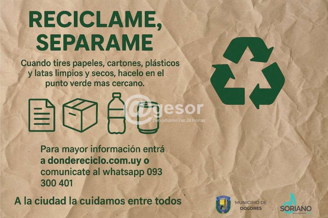 Mensaje del Municipio de Dolores sobre el programa de reciclado y separación de los residuos