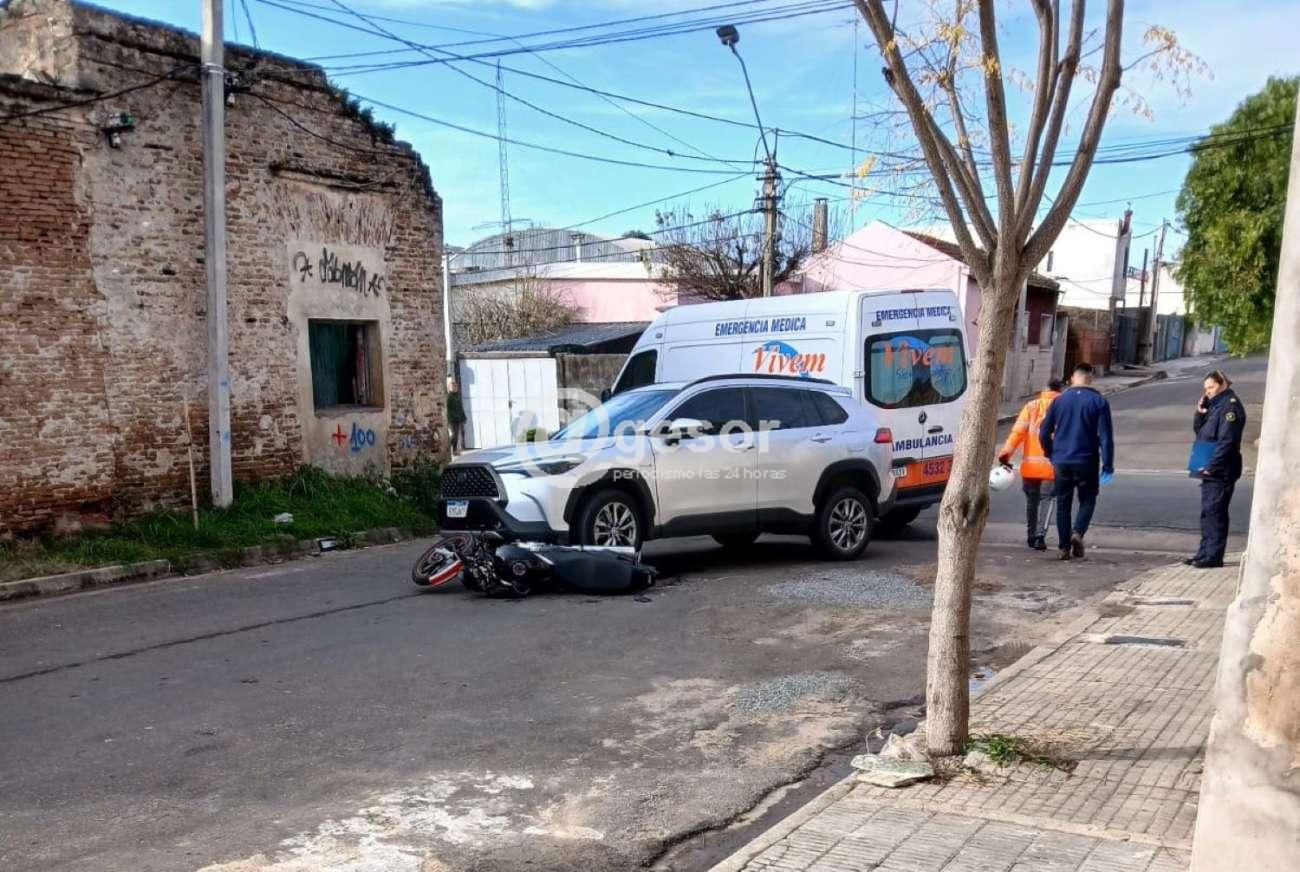 Este martes se produjo siniestro de tránsito en la zona de Tomás Gómez y De castro y Careaga, en el que participaron una camioneta y una moto en la que circulaban dos funcionarios de la Brigada de Tránsito Municipal.