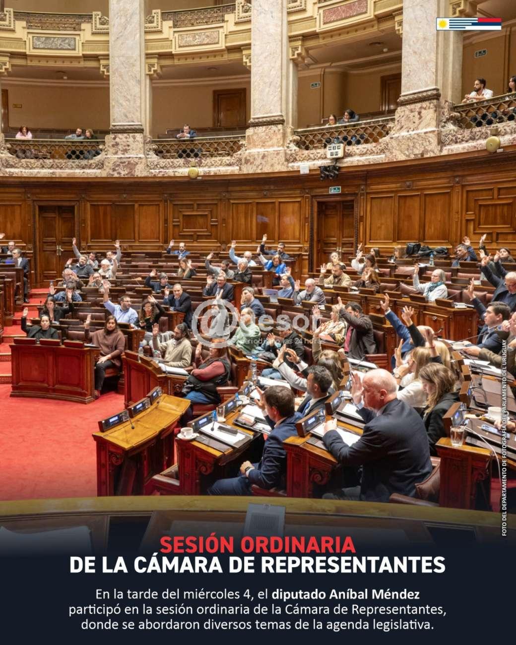 Ese mismo día, en la tarde, el diputado Méndez estuvo presente en la sesión ordinaria de la Cámara de Representantes, participando en el tratamiento de asuntos legislativos.