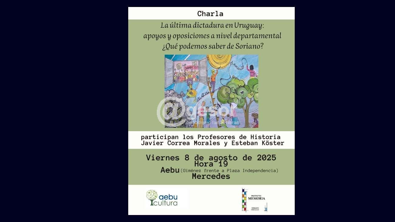 Este viernes la Comisión Memoria, Justicia y contra la Impunidad de Soriano organiza una charla con el título: “ La última dictadura en Uruguay: apoyos y oposiciones a nivel departamental ¿Qué podemos saber de Soriano?” Partiticparán de la misma los profesores de Historia Javier Correa Morales y Esteban Köster.