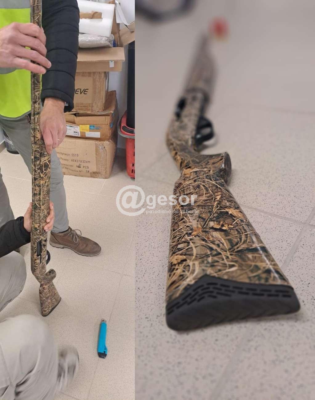 Dentro de un bulto que permanecía en custodia, el personal aduanero halló una escopeta semiautomática marca Armed, modelo Camouflage Next, calibre 12, en desarme estándar, y tres cartuchos marca CBC, calibre 12GA 70mm.