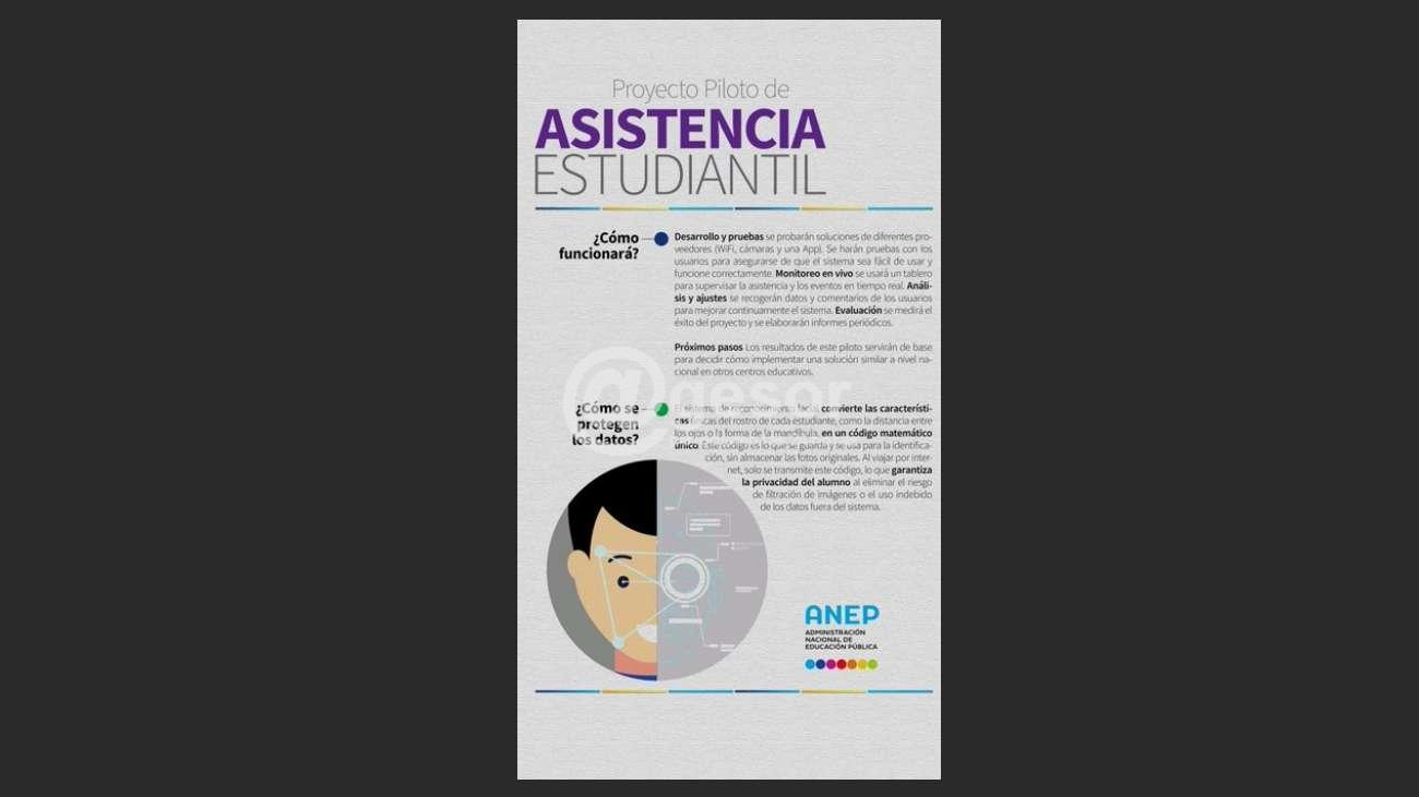 (escribe Pablo Romero) La ANEP comenzará un plan piloto, en liceo de Piriápolis, para controlar la asistencia de los alumnos mediante reconocimiento facial, colocando en manos de empresas tecnológicas los datos de nuestros estudiantes y convirtiendo a los centros educativos en centros de control monitoreado mediante datos biométricos. Un disparate que ya ha generado problemas en algunos países donde se aplica, incluso siendo declarado ilegal en Francia, donde se planteó un proyecto similar. "Declaran ilegal usar reconocimiento facial en los colegios franceses" https://elespanol.com/invertia/disruptores/grandes-actores/tecnologicas/20200402/declaran-ilegal-usar-reconocimiento-facial-colegios-franceses/478953751_0.html