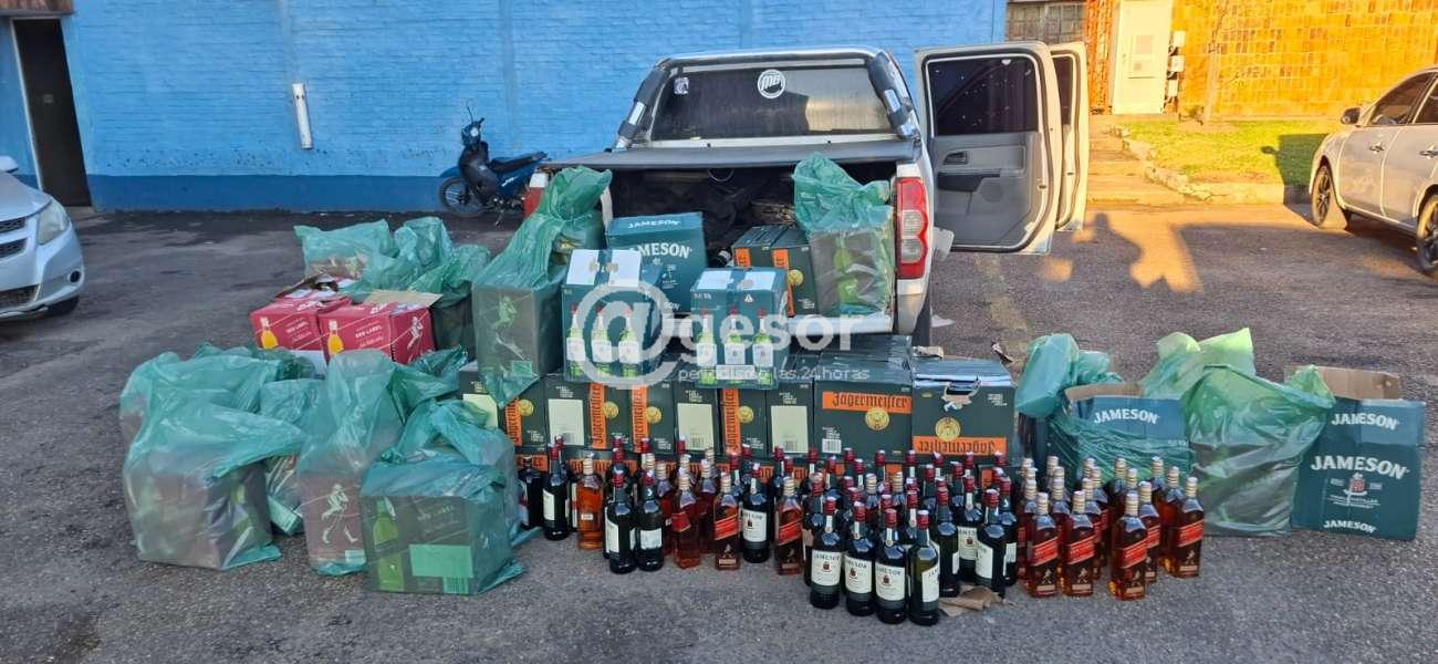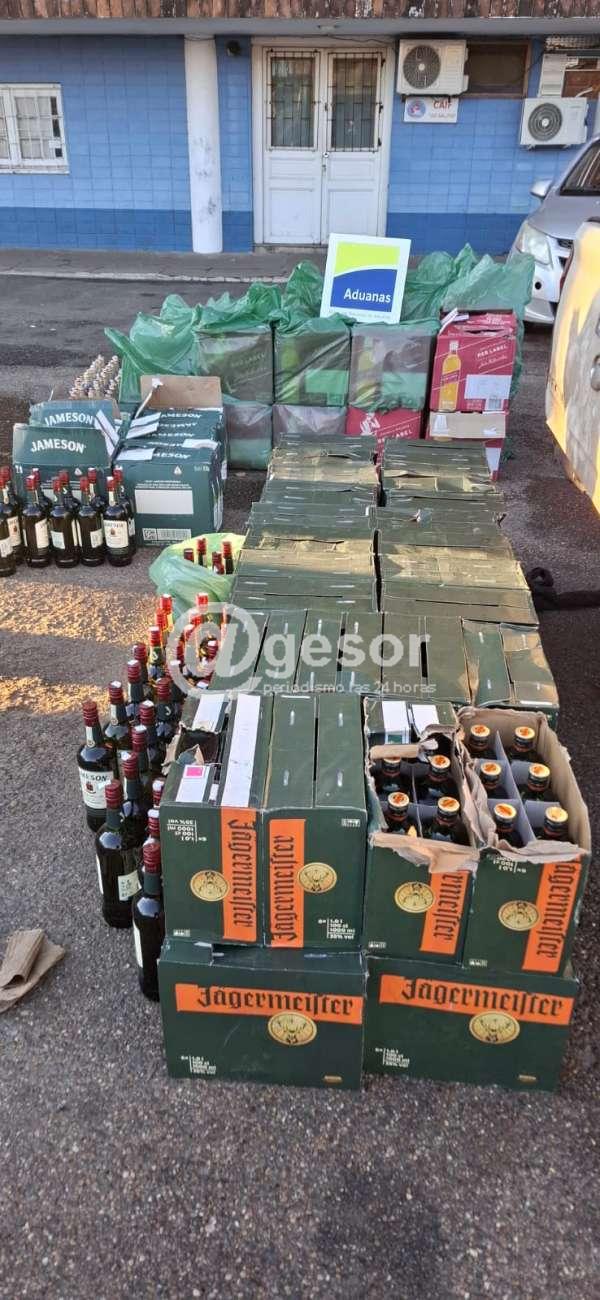 En el otro procedimiento de control realizado en la ciudad de Salto, se interceptó un vehículo que transportaba mercadería de origen extranjero sin la documentación requerida, en clara infracción de la normativa aduanera. Se incautaron 612 botellas de Whisky y 300 botellas de licor de hierbas junto con el vehículo, Quedando los involucrados a disposición de la Justicia para su evaluación y posterior resolución.