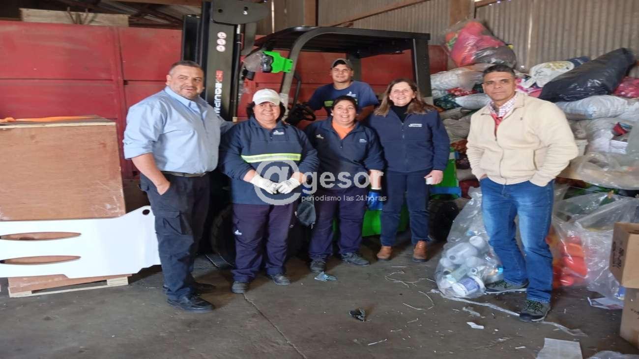 La Intendencia de Soriano hizo entrega en Risso de autoelevador eléctrico para trabajar con los fardos de cartón y plástico que se acondicionan en la planta de acopio de materiales reciclables de la localidad.