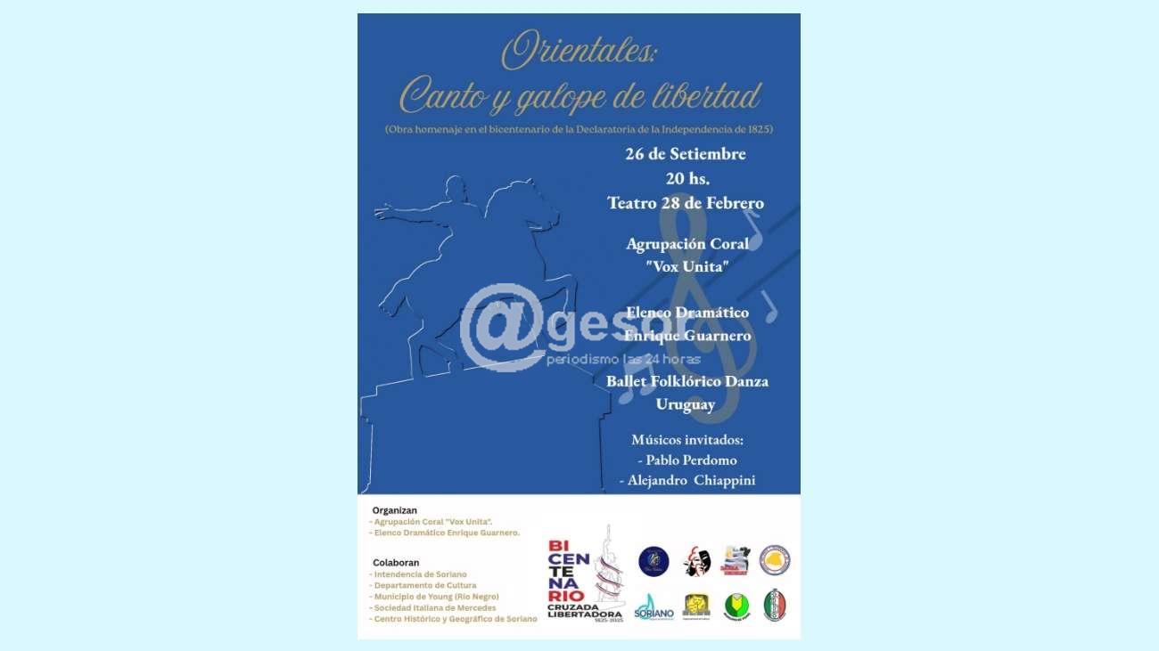 Esta puesta en escena, organizada por la Agrupación Coral Vox Unita y el Elenco Dramático Enrique Guarnero, constituye un sentido homenaje a la patria en el marco del Bicentenario de la Cruzada Libertadora y de la Declaratoria de la Independencia del Uruguay.