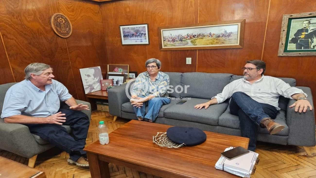La reunión tuvo lugar en el despacho del intendente Guillermo Besozzi, en Palacio Municipal, donde recibió la visita de su colega el Arq. Guillermo Levratto, sumándose también la Dra. Andrea Aunchayna, Secretaria General de la comuna de Soriano.