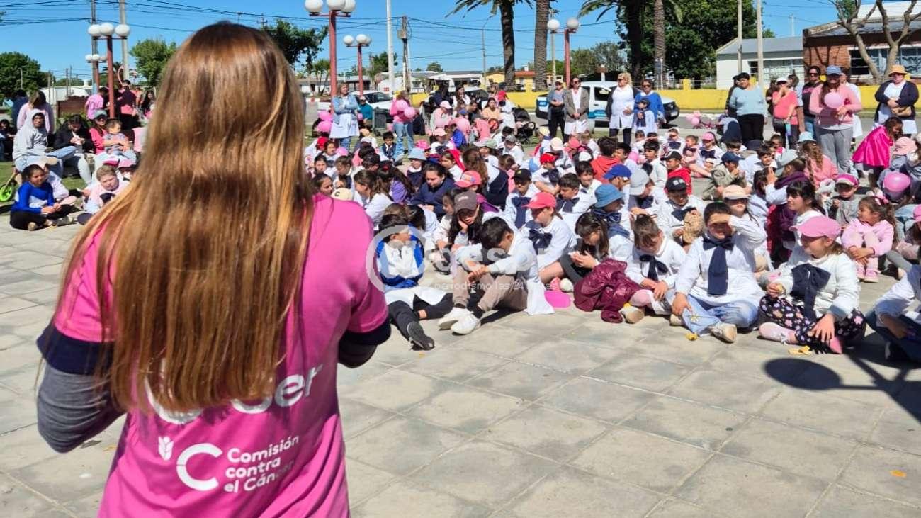 Participaron el alumnos del centro CAIF, del Jardín de niños, de la escuela, el liceo y vecinos de la localidad, quienes recorrieron las calles portando elementos en color rosa y entregando folletería informativa del Área de Género y de la Comisión Honoraria de lucha contra el Cáncer.