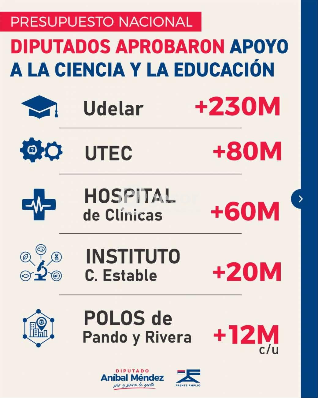 La bancada de Diputados del Frente Amplio en coordinación con el Poder Ejecutivo definieron estos incrementos dentro del Presupuesto Nacional: