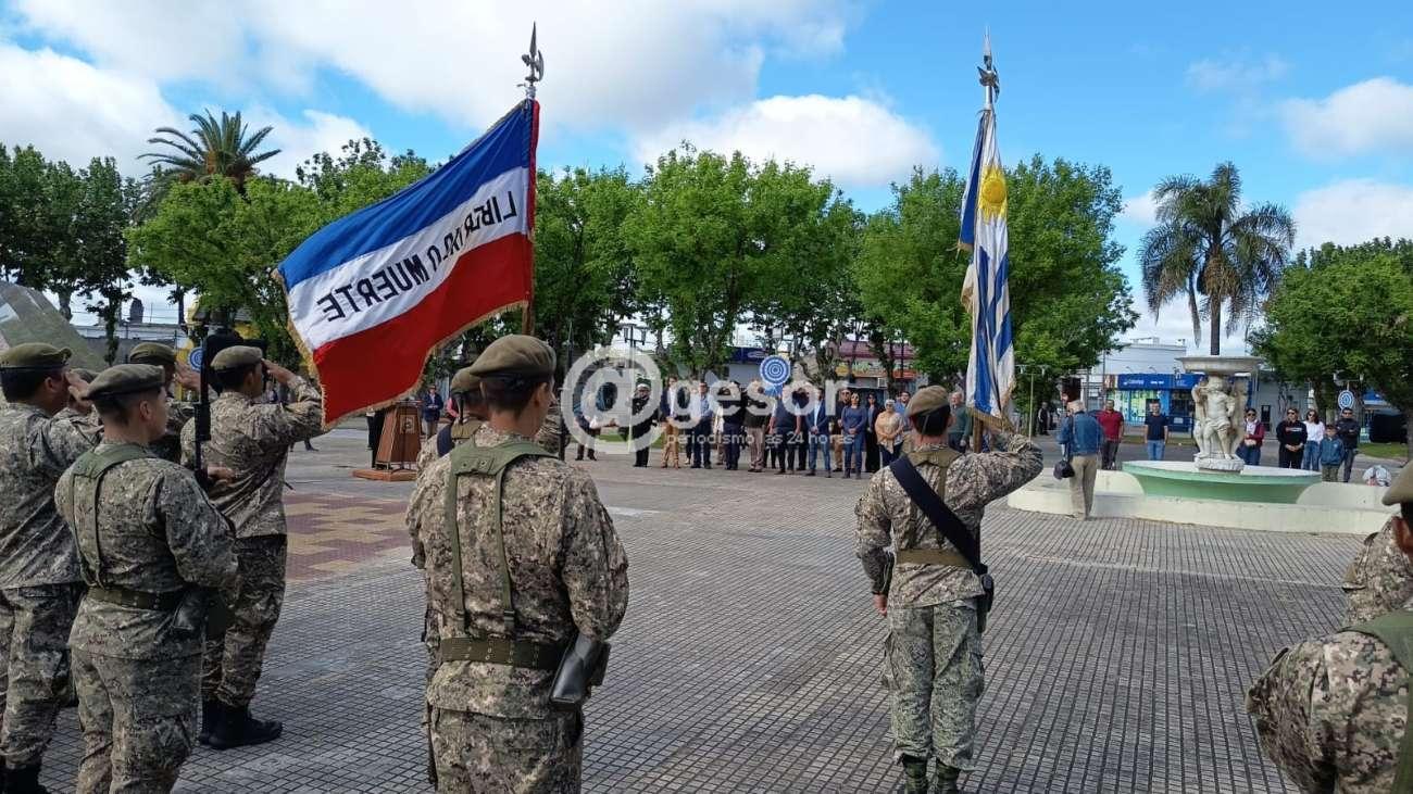 El acto protocolar comenzó con entonación del Himno Nacional uruguayo, posteriormente la parte oratoria que estuvo a cargo del profesor Santiago Zefferino. El acto contó con la presencia de autoridades departamentales, encabezada por el intendente Guillermo Besozzi, autoridades militares, policiales y de prefectura.