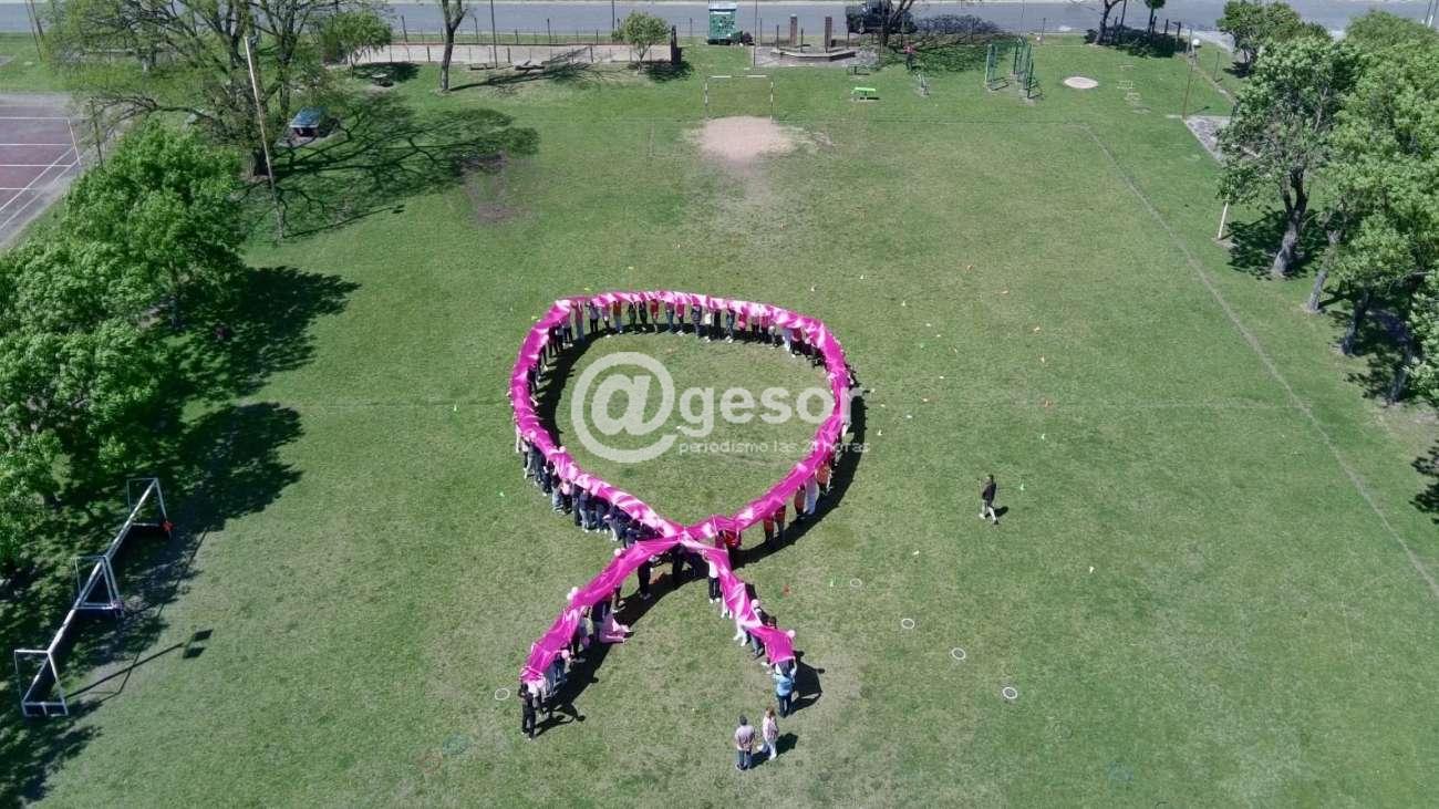 Durante la jornada, los participantes conformaron una gran figura que representó el lazo rosa, en una acción conjunta orientada a fortalecer la prevención y detección temprana del cáncer de mama, además de promover hábitos saludables y el autocuidado.