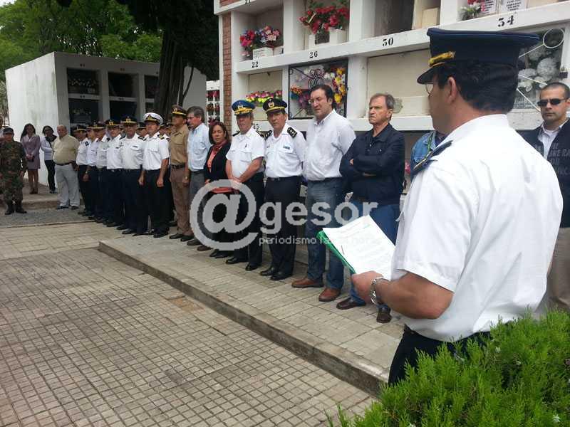 Este miércoles en la necrópolis de Mercedes tuvo lugar el acto de recordación de los "Policías caídos en el cumplimiento del deber". La instancia estuvo acompañada por autoridades nacionales y departamentales, entre ellas el Jefe de Policía de Soriano, Washington Curbelo, el Intendente de Soriano Guillermo Besozzi, los diputados por Soriano Gonzalo Novales y José Amy, entre otras.