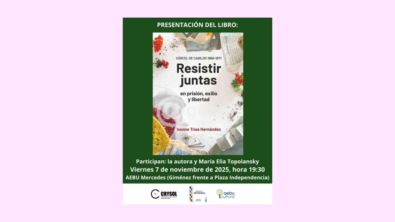 El próximo viernes 7 de noviembre a las 19:30 horas se presentará en AEBU Mercedes el libro Resistir juntas: en prisión, exilio y libertad, de la periodista e investigadora Ivonne Trías Hernández. La actividad contará con la participación de la autora y de María Elia Topolansky, en un espacio de diálogo abierto al público.
