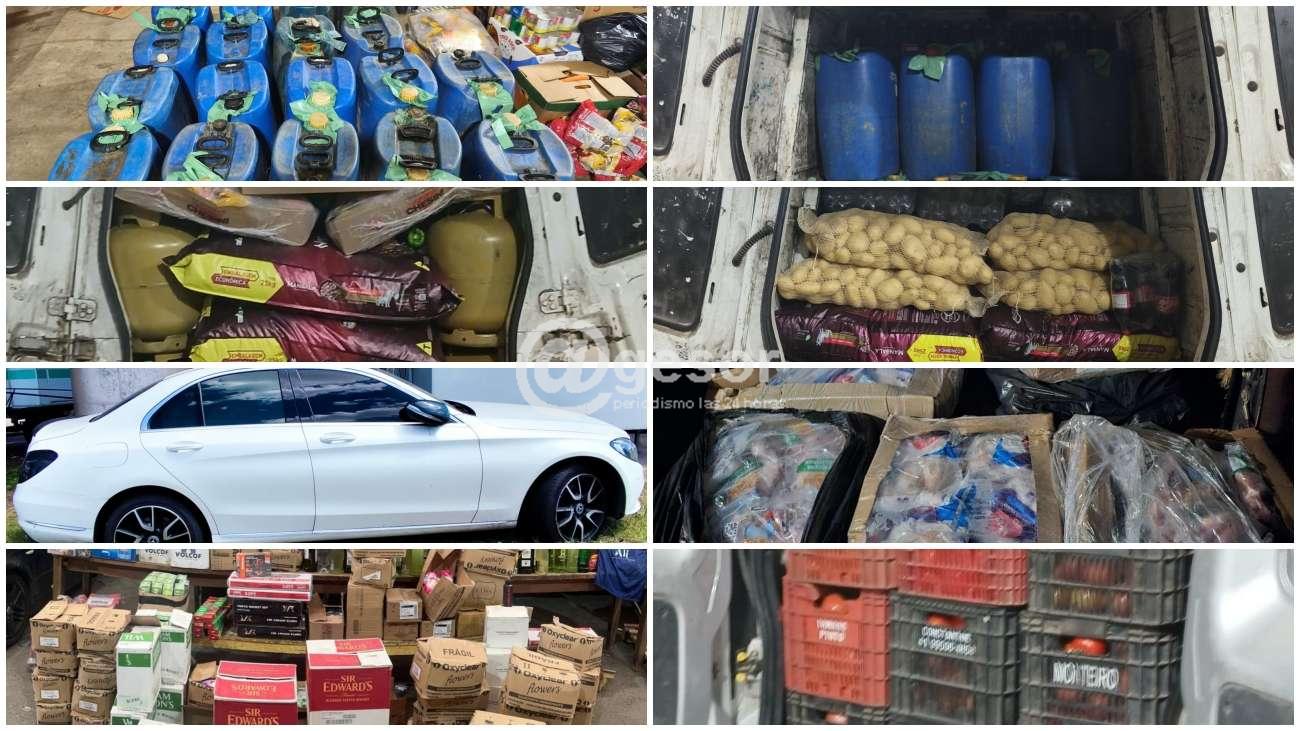 - Uno de ellos trasladaba en la misma carga más de 900 litros de nafta, 6 garrafas de 13 kg, alimento para perros, frutas y verduras, refrescos, carne de pollo, yerba, entre otras mercaderías. El valor total de la mercadería incautada es de 180 mil pesos uruguayos.