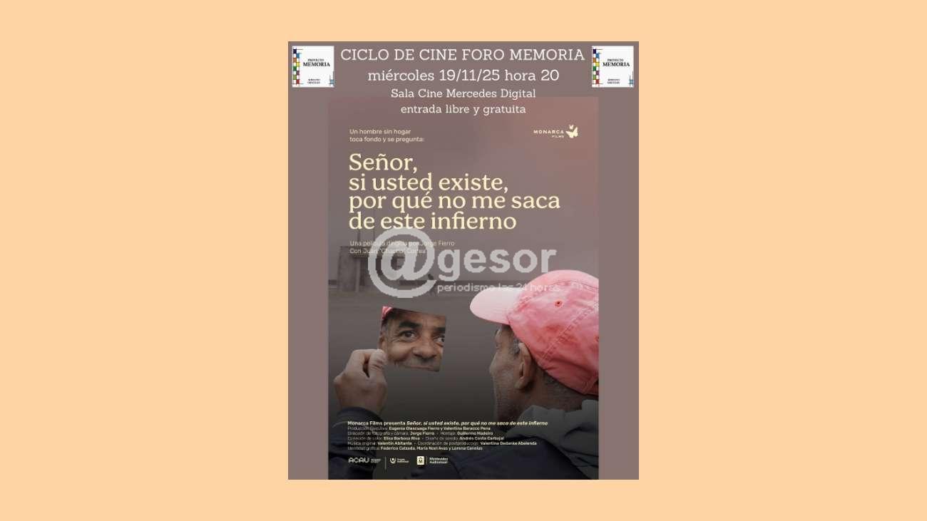 El miércoles 19 de noviembre de 2025 continúa el ciclo de Cine Foro Memoria, organizado por la Comisión Memoria, Justicia y contra la impunidad de Soriano. En Cine Mercedes Digital se proyectará el documental “Señor, si usted existe, por qué no me saca de este infierno”, digirido por Jorge Fierro, con la actruación de Juan “Cacho” Correa.