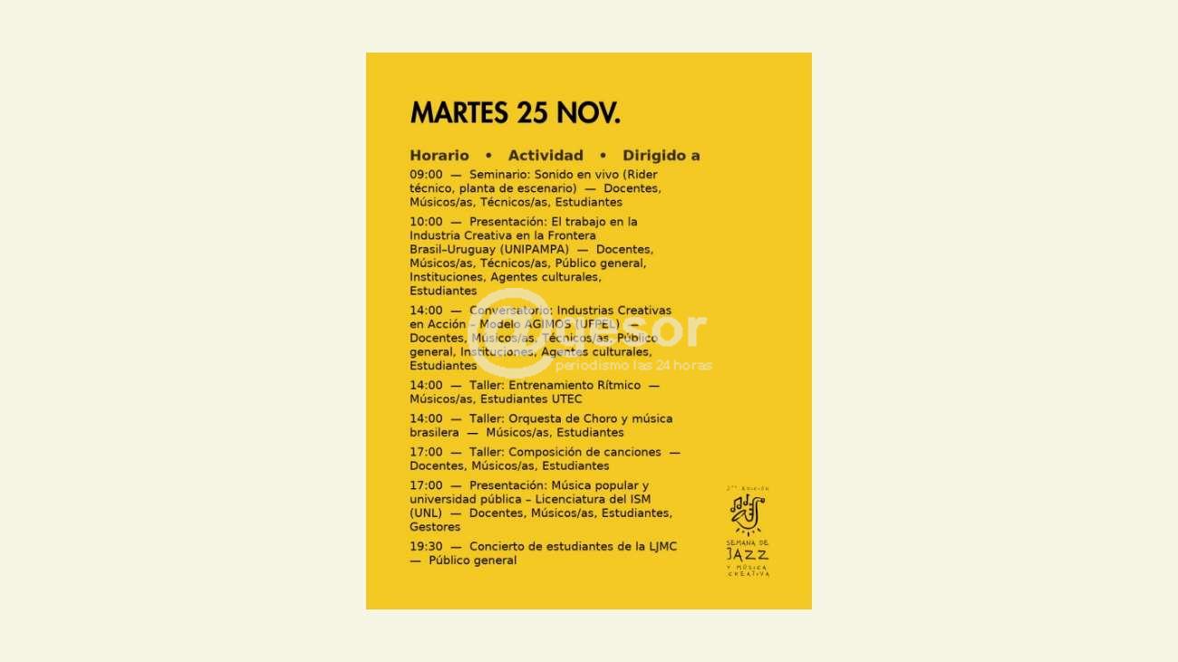 La actividad comenzó el lunes y se extenderá hasta el 29 de noviembre. La programación para este martes 25 es la siguiente: