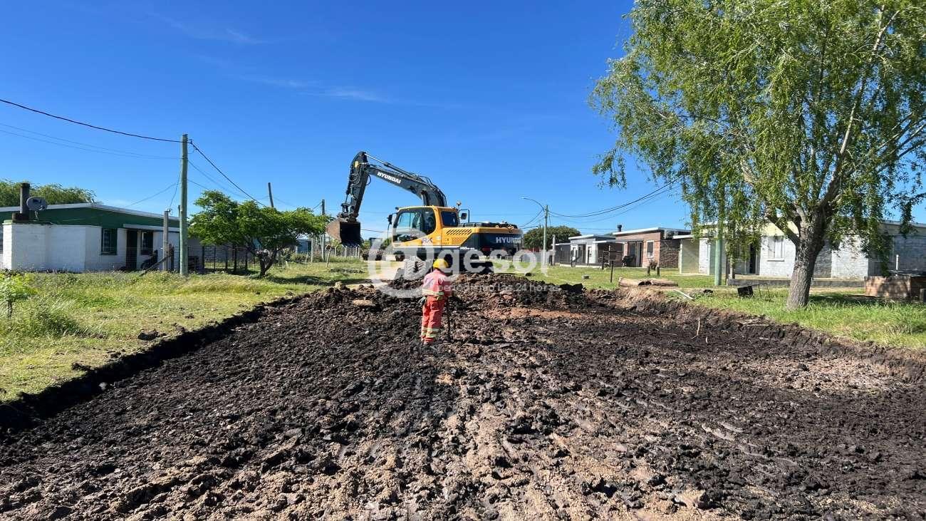 El desarrollo de las obras de acondicionamiento urbano en el barrio MEVIR de Cardona genera un intenso movimiento de maquinaria vial pesada y de obreros que cumplen con las tareas en diversos puntos de esta zona.