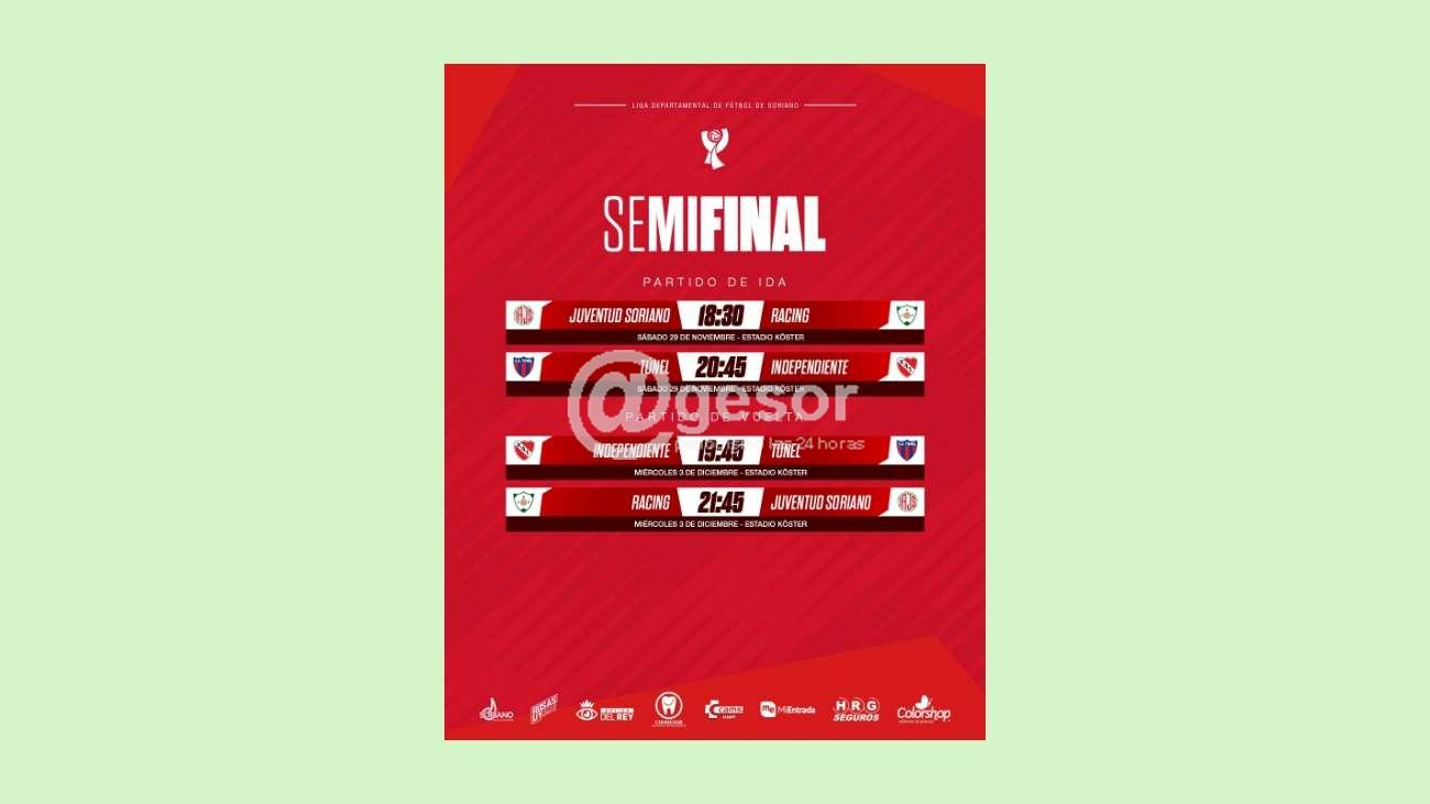 Se reunió la Liga Departamental de Fútbol de Soriano bajo la presidencia del Dr. Pablo Marrero a los efectos de fijar lo que serán las semifinales del Torneo competencia 2025 denominado "75 años de Juventud Soriano". En ese sentido, se fijó para el día sábado los partidos de ida entre Juventud Soriano y Racing será a las 18,30 horas, mientras que a segunda hora, es decir desde las 20,45 jugarán Túnel e Independiente.