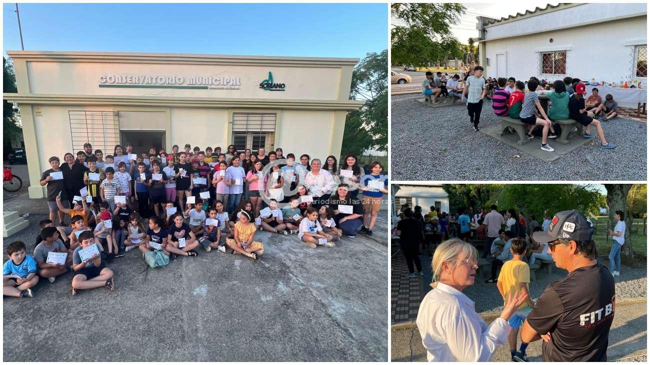 Con la presencia del alcalde Gabriel Bentancur, este martes 3 de diciembre se llevó a cabo en el Conservatorio Municipal de Cardona una merienda compartida y la entrega de carné y certificados correspondiente al cierre de los cursos municipales del año 2025. La actividad comenzó a las 18:00 horas y reunió a estudiantes de solfeo, teoría, órgano, piano, guitarra, batería, percusión, trompeta y del coro de niños.