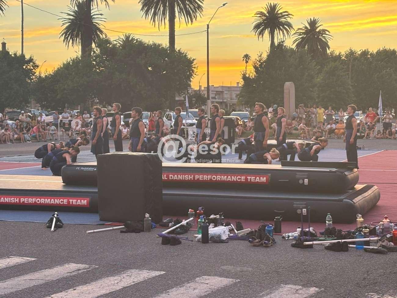 Allí estuvo presente el intendente Guillermo Besozzi, apreciando la exhibición de destreza del equipo nacional de gimnasia de Dinamarca.