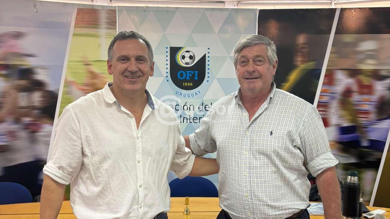 El intendente de Soriano, Guillermo Besozzi, mantuvo una reunión con el presidente de la Organización del Fútbol del Interior (OFI), Sebastián Sosa, en la sede de la institución en Montevideo.